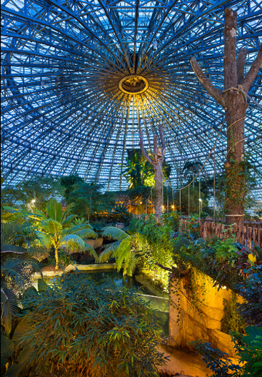 La verrière du dôme intègre un système d’aération naturelle optimisé par un brassage d’air afin de concilier confort du vivant (animaux, visiteurs, plantes tropicales) et économies d’énergie ; elle est constituée de profilés aluminium à rupture de pont thermique. Des verres double vitrage aux caractéristiques de transmission lumineuse et d’apports solaires différents sont installés en fonction des aménagements et de l’orientation cardinale du dôme.