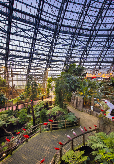 Le nouvel ouvrage de Beauval, d’une superficie totale de 13 855 m², comprend un restaurant panoramique et une serre tropicale de 8 000 m² au sol. Ce dôme bioclimatique affiche un diamètre de plus de 100 m (longueur d’un terrain de foot) pour une hauteur de 38,24 m, soit l’équivalent d’un immeuble de plus de 10 étages.