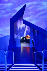 Tout le travail de Rémy Cimadevilla et d’Agnès Charvet, concepteurs lumière, 8’18’’, s’appuie sur la scénographie de Pascal Payeur, ce voyage tout en verticalité au fond des océans : « L’originalité du site, écrit-il, repose sur l’existence de nombreux aquariums ; nous avons cherché une réponse dans les relations entre le vivant réel et tangible contenu dans les bassins inaccessibles et l’imaginaire d’une plongée sous-marine que l’on vivrait au sec. »