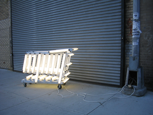 Tubes fluos, métal, roues, câbles électriques, électricité d’un réverbère et vidéo