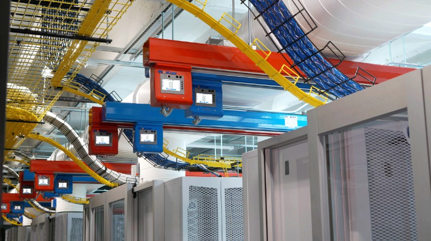 Le remplacement des câbles d’alimentation des baies par des canalisations électriques préfabriquées (ou gaines à barres) en partie haute fait partie des aménagements pour mieux suivre l’évolution des installations d’une salle.