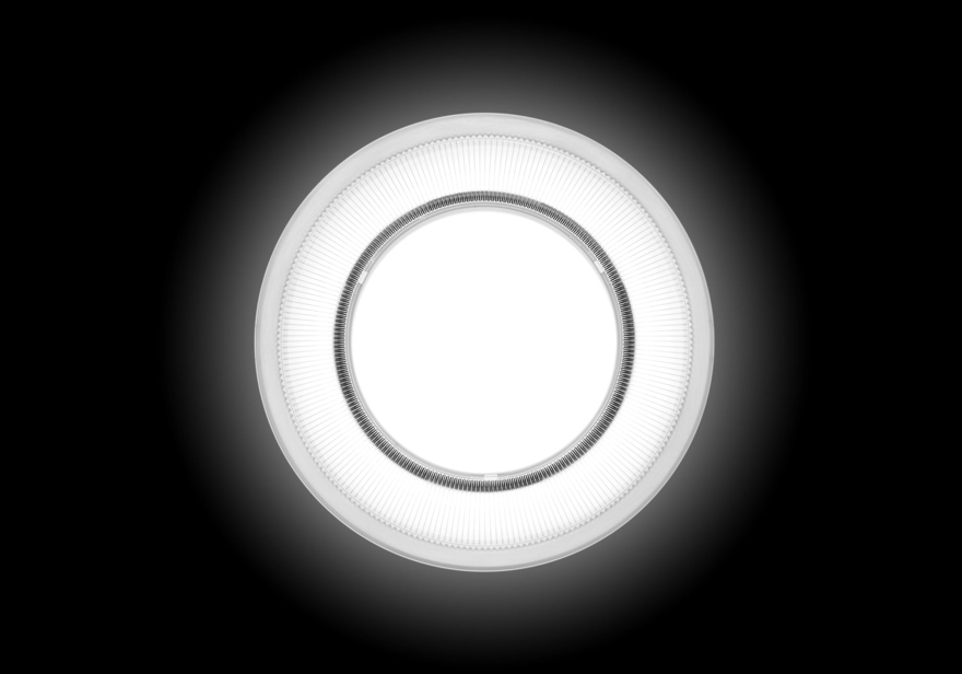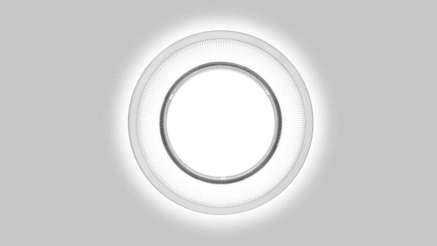 Easy Space est doté d’un anneau translucide qui permet de collecter, enrichir et distribuer la lumière émise par le réflecteur en nombreux reflets cristallins et éclats magiques, en distribuant la lumière au plafond, et en équilibrant les contrastes de luminance sur les différents plans de l’espace.