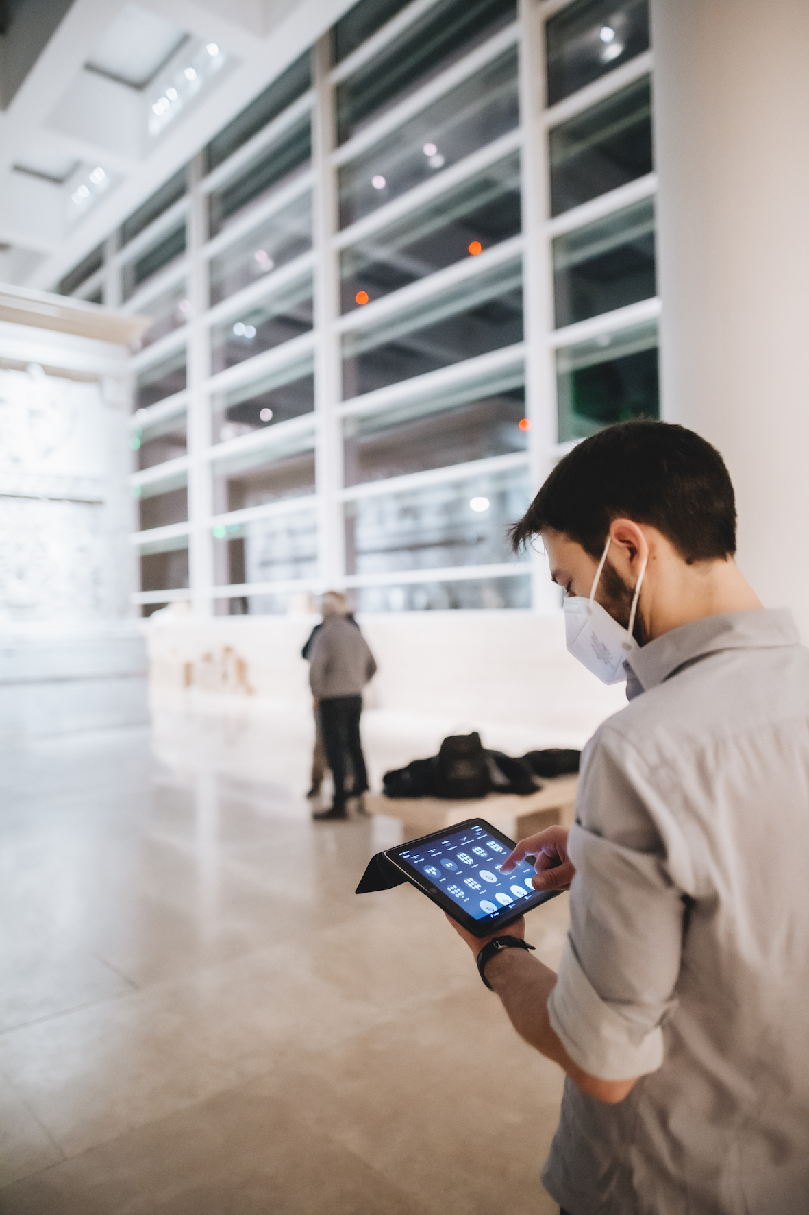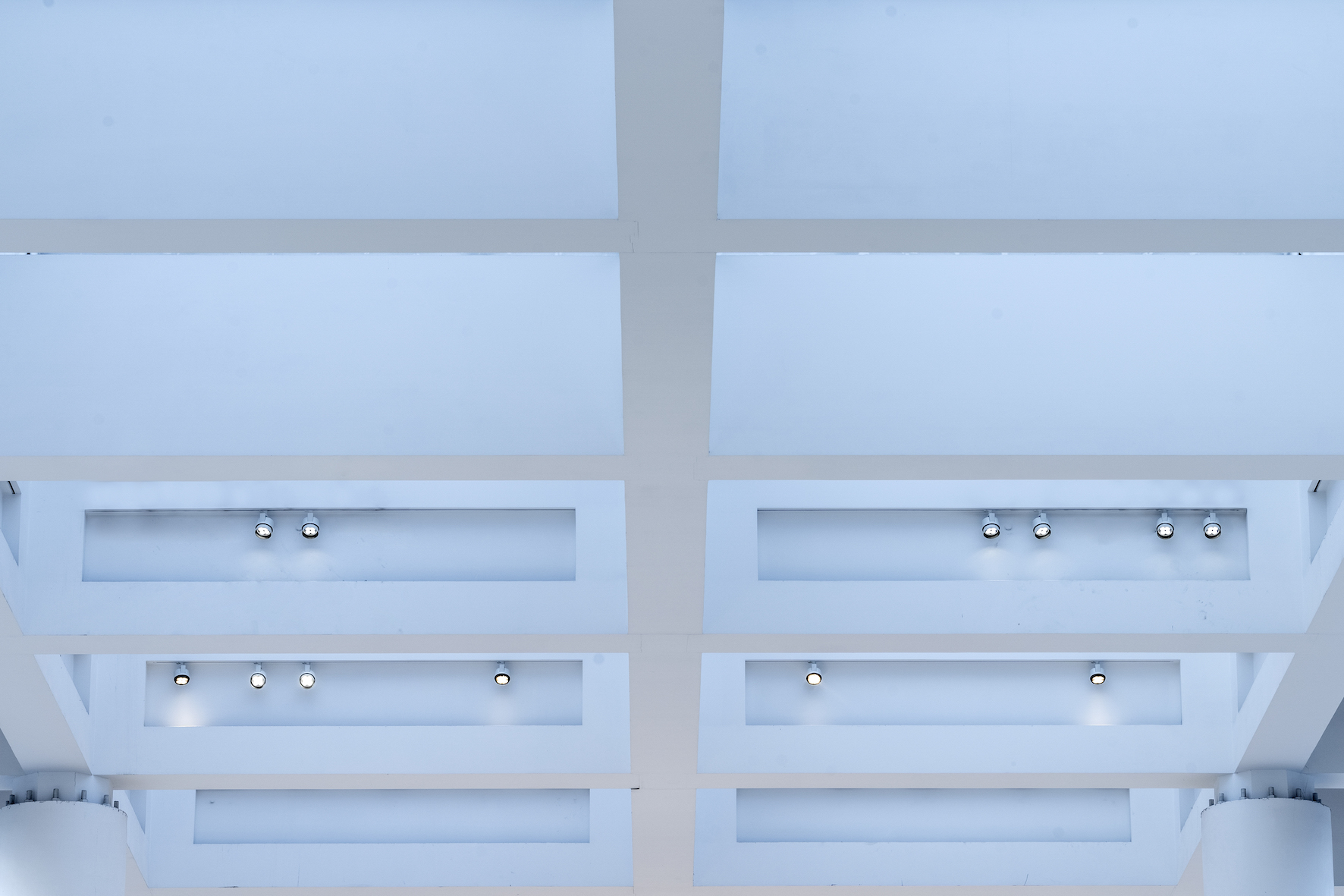 Dans la salle où est exposé l’autel, des projecteurs Parscan (LED 24 W) de couleur de lumière blanc chaud 3 000 K et à répartition de lumière Spot (16°) assurent l’éclairage général. Entouré de quatre murs, l’autel lui-même est mis en lumière par des projecteurs Parscan (LED 8 W) de couleur de lumière blanc neutre 4 000 K avec une répartition de lumière Narrow spot (6°). Cette lumière d’accentuation ciblée engendre un jeu d’ombre et de lumière expressif sur le relief de marbre artistique, et fait littéralement ressortir les personnages représentés. Un véritable défi pour la conception lumière dans la salle centrale qui entoure l’Autel de la Paix d’Auguste a été celui de la lumière du jour, sans cesse changeante, qui pénètre par les lucarnes ainsi que par les deux côtés entièrement vitrés du bâtiment. Le nouvel éclairage s’y adapte grâce à des capteurs et à la technologie de commande Casambi Bluetooth : l’intensité de la lumière est régulée de sorte que les reliefs en marbre sur les côtés de l’autel soient toujours éclairés de façon optimale, et que le monument d’un blanc éclatant se détache de son environnement. De plus, d’autres scénarios lumineux prédéfinis peuvent être déclenchés en fonction de la saison, du moment de la journée et de la fréquentation du musée.