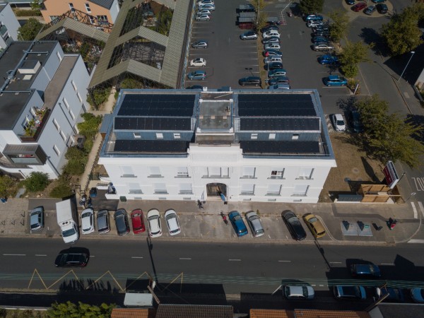 DualSun donne l’exemple de la réhabilitation du bâtiment ancien « La Marseillaise » à Nantes. Ce bâtiment de 1 000 m2 a obtenu le label BBC Rénovation et ne fait plus appel à aucune énergie fossile. 65 m2 de panneaux solaires hybrides (PVT) DualSun ont été déployés sur la toiture. Ces 40 panneaux PVT sont complétés par 60 panneaux photovoltaïques qui produisent 30 MWh d’électricité. Les panneaux hybrides aliment thermiquement une pompe à chaleur Heliopac de 8 kW. Cette eau chaude produite par le « verso » des panneaux DualSun va servir aux besoins sanitaires du bâtiment et réduire de plus de 50 % la consommation d’énergie liée à la production d’ECS. Une production qui représente pour un bâtiment une grande part de la facture énergétique. Quant à la production d’électricité PV, si elle se révèle supérieure aux besoins du premier bâtiment, EDF a proposé un dispositif innovant d’autoconsommation avec un surplus redirigé vers deux autres bâtiments voisins. C’est 98 % de l’électricité produite sur place qui est consommée sur place.