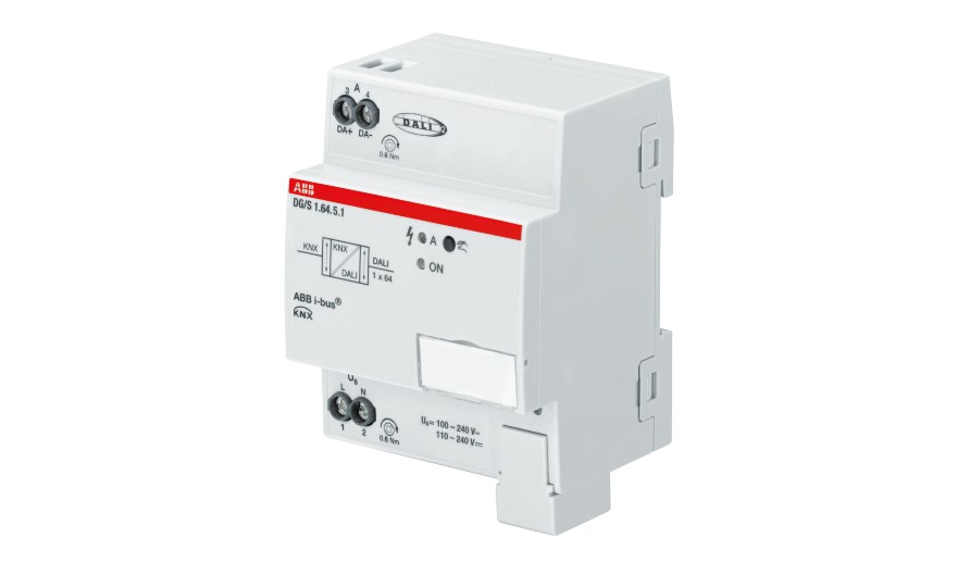 Les nouvelles passerelles KNX DALI Premium d’ABB, d’une largeur de 2 modules (70 mm), s’installent sur rail DIN et ont la possibilité de piloter jusqu’à 128 appareils DALI (2 sorties de 64 appareils).