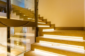 Un travail spécifique a été réalisé sur les températures des éclairages, en particulier sur les marches menant aux différents niveaux avec des différences de couleurs d’éclairage, variant de 4 000 K à 3 000 K, avec une volonté de faciliter les déplacements des visiteurs malvoyants.