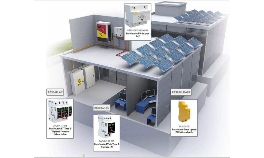 « Chez ADEE, nos clients sont les installateurs petit tertiaire et les distributeurs spécialisés en photovoltaïque. Souvent, ces installateurs créent leur propre pack », explique Jérôme Marcuz, chef produit protection foudre. Pour la partie AC de l’installation, ADEE propose des parafoudres classiques. « Pour ceux qui veulent gagner du temps, nous construisons dans notre atelier un petit coffret qui comprend les étiquetages normatifs, le disjoncteur, le sectionneur et le parafoudre. Cependant, pour la partie DC, nous avons un parafoudre pour les applications inférieures à 600 V et un autre jusque 1000 V. Nous développons un produit pour atteindre 1 500 V DC », ajoute-t-il.