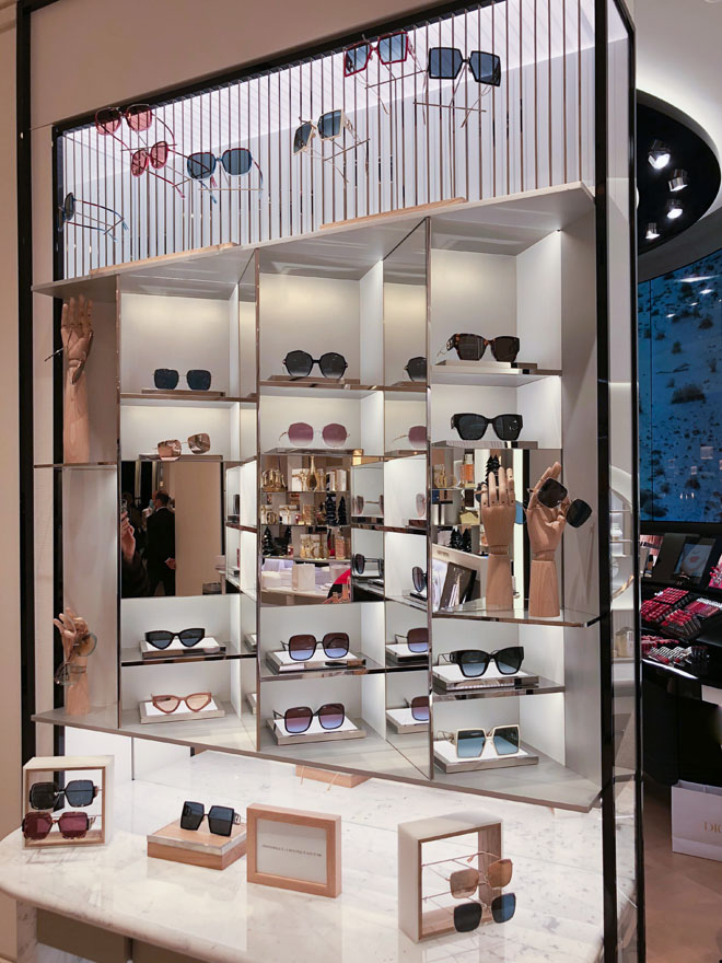 Akari-Lisa Ishii a développé une guideline spécifique au présentoir de lunettes de soleil : « L’opération n’est pas aussi simple qu’il y paraît au premier abord, précise-t-elle, car il faut tenir compte de la forme de l’objet, de la transparence et de la couleur des verres. » Une autre partie, « bijoux », est venue s’ajouter et a, elle aussi, demandé une étude particulière pour mettre en valeur les pierres et les différentes matières.