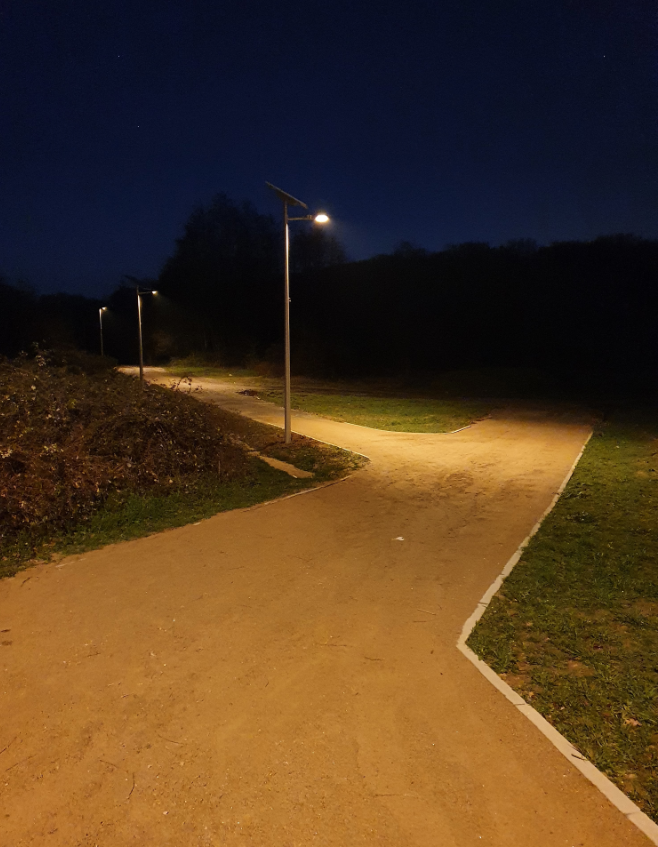 La ville de La Roche-sur-Yon en Vendée avait besoin d’éclairer les abords de l’un de ses établissements scolaires, le lycée Nature. Novéa Énergies a déployé 36 ensembles solaires issus de deux gammes différentes pour répondre au besoin de sécurité de la ville, tout en s’adaptant aux contraintes liées à la biodiversité et aux spécificités des zones ombragées. Novéa Énergies a équipé ces dernières de 5 Multi Top 6, qui ont la particularité de pouvoir alimenter d’autres luminaires en énergie solaire (28 luminaires en tout répartis sur les 5 centrales), résolvant ainsi la contrainte du manque d’exposition directe au soleil. Le reste de la zone est équipé de 8 Combi Top 2, le tout en coloris gris clair (RAL 9006).