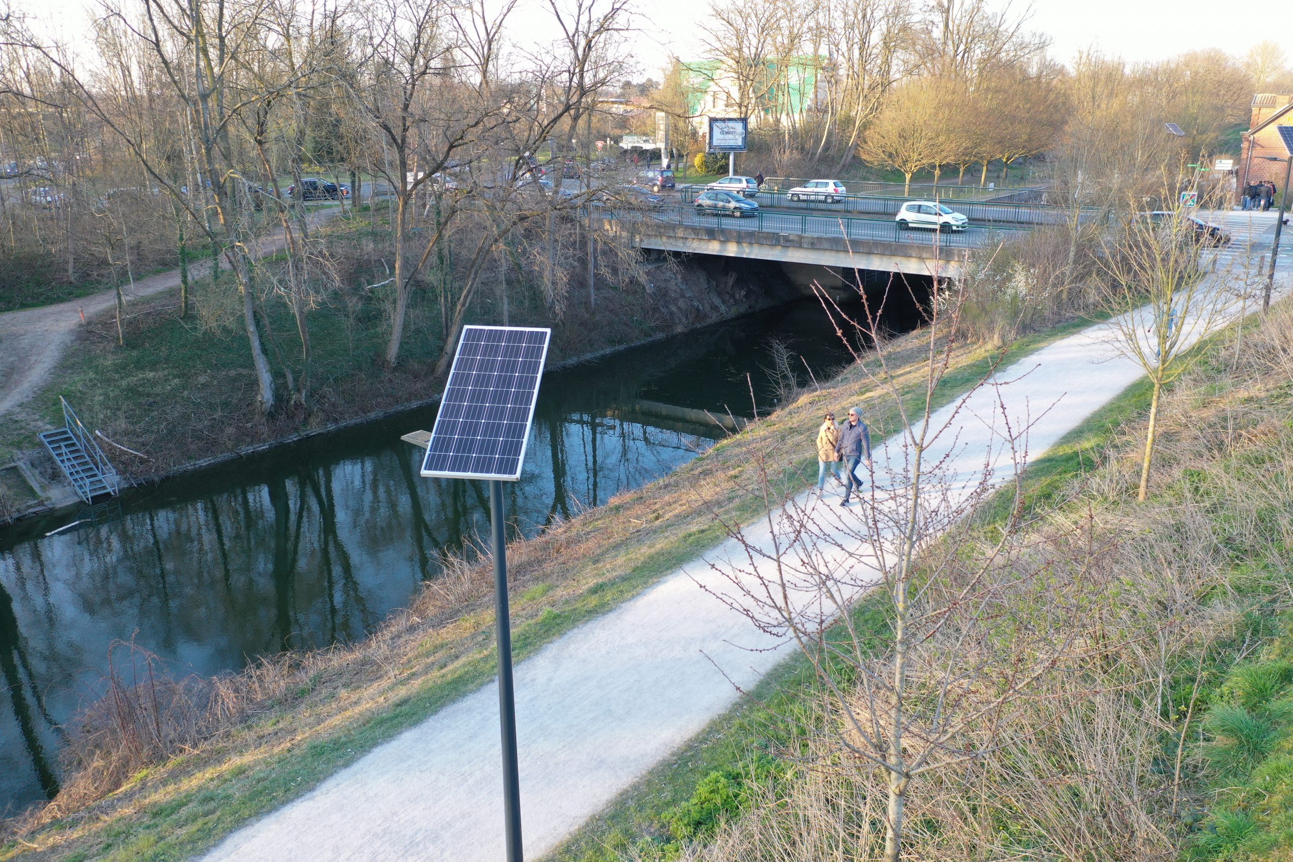 74 ensembles solaires pour éclairer un chemin de halage à Wasquehal