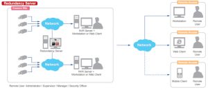 Il existe des situations où le serveur NVR peut devenir inaccessible, ce qui implique que les caméras n’ont pas d’enregistreur vers lequel envoyer le flux vidéo. Cela peut se produire en raison d’une panne de réseau, de commutateur de données, de courant, d’une erreur humaine ou pour toute autre raison. Même s’il est très peu probable que de tels incidents se produisent, les solutions critiques doivent avoir une protection adéquate. Un service continu et sans faille peut être obtenu en utilisant la redondance NVR à chaque fois que le NVR d’origine n’est pas accessible. Le système alternatif intervient immédiatement et commence à enregistrer les flux vidéo des caméras appartenant au NVR d’origine. ACTi propose deux types de solutions de service de redondance : N+1 et N-to-N.