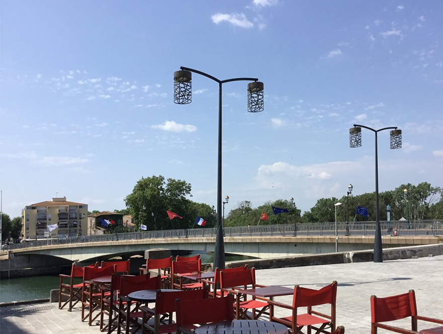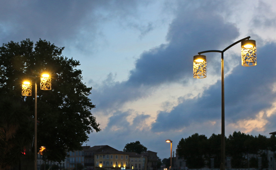 Dotée de lanternes quatre faces posées il y a une vingtaine d’années, la municipalité agathoise décide de rénover l’éclairage de certains quartiers de la ville afin de bénéficier des dernières technologies. « Ainsi, le quai des Dames, le quai du Chapitre, la rue Honore Muratet et la place Jean Jaurès ont vu leur éclairage rénové, explique Bruno Adjadj, agent technico-commercial chez Ragni. La Ville souhaitait un luminaire original qui la distingue des communes environnantes, donc nous avons proposé le Lampion qui permet des motifs de découpe personnalisables. » Le luminaire était présent au catalogue mais n’avait jamais été fabriqué, ce qui répondait parfaitement au critère de la ville. Dans un premier temps, Ragni présente une image de synthèse à la municipalité puis fabrique un prototype. « Le premier modèle était trop grand, précise Bruno Ajdadj, nous avons donc fourni un deuxième modèle plus petit qui a fait l’unanimité. C’est une des spécificités de Ragni d’ailleurs : pouvoir s’adapter constamment à la demande de ses clients. Nous avons opté pour une température de couleur de 3000 K. »