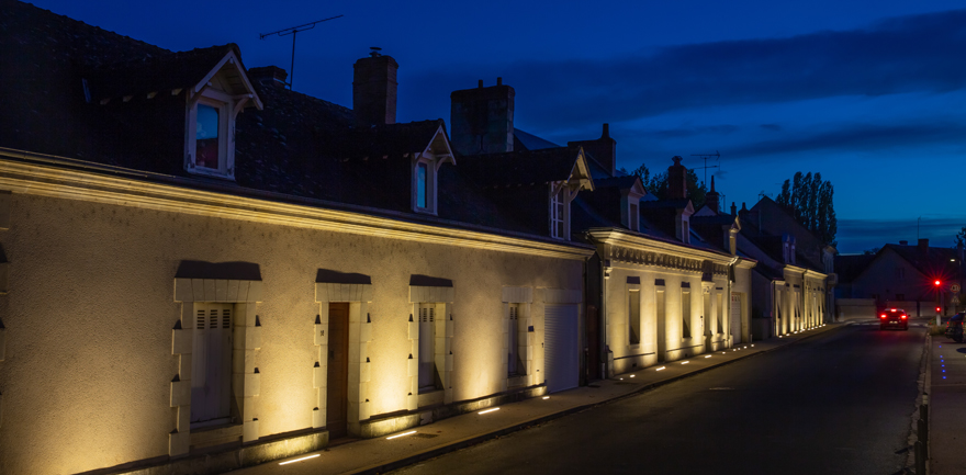 Successivement place forte, lieu de pèlerinage pour sa « grotte au château de la source » où demeurent encore des vestiges de thermes romains, Semblançay, aujourd’hui commune rurale typique de la campagne tourangelle, conserve un patrimoine riche et éclectique, témoin de son évolution dans l’histoire. Sous le confort des lanternes, les axes pénétrants se rejoignent dans l’ambiance nuancée que distillent les mâts grappes d’appliques aux entrées de la ville. La teinte blanche de l’atmosphère lumineuse accompagne le noctambule, révèle la végétation et revêt le pont de trois points bleus qui se diffusent en reflets sur la rivière. La rue principale s’étoffe, montre, par la lumière émanant du sol, les détails des façades taillées aux signes des compagnons ainsi que celles, plus sobres, des autres maisons de même style.