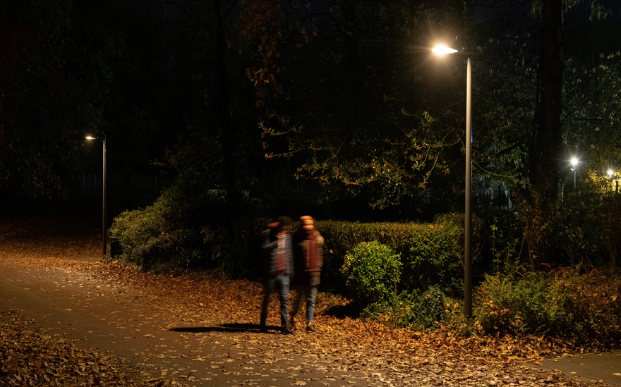 • de novembre à mars, les chauves-souris hibernent, les modules led de 2 200 K ou 3 000 K entrent en action. Ils s’adaptent aux horaires et à l’activité humaine. En présence d’une voiture ou d’un cycliste, les capteurs entrent en scène et les leds blanches s’activent provisoirement, puis s’abaissent lorsque l’usager s’est éloigné. Cette solution permet aussi d’adapter l’éclairage aux besoins des usagers tout en garantissant visibilité et sécurité optimales dans leurs déplacements.