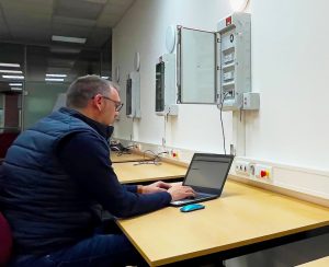 Après leur arrivée, tous les produits passent sur un banc d’essai. Les détecteurs de présence et de mouvement sont branchés et leurs circuits électriques et électroniques sont testés. S’ils répondent aux critères de conformité, ils transitent ensuite vers le stock.