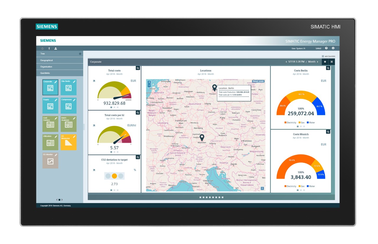 Au niveau Supervision, Simatic Energy Manager constitue l’outil idéal pour la gestion des données énergétiques pour le présent et l’avenir. Avec ses données énergétiques d’acquisition et de traitement automatique, il assure le suivi des indicateurs de performance en intégrant des modèles de mesures prédictifs afin de réduit les coûts énergétiques et augmenter l’efficacité énergétique des systèmes. »