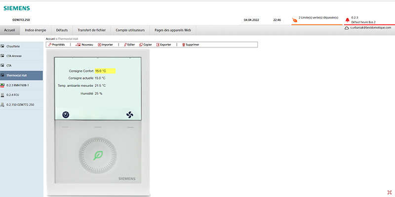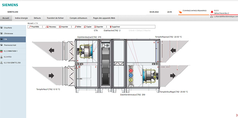 Toute l’installation est reliée au superviseur OZW772 Siemens, ce qui permet au gestionnaire des équipements de la ville d’avoir une vision à distance sur l’ensemble des installations :