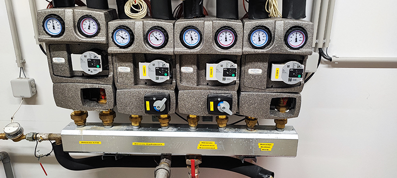 L’eau chaude sanitaire est également régulée par le système. Pour l’accueil, des plinthes soufflantes sont installées et pilotées par un thermostat.