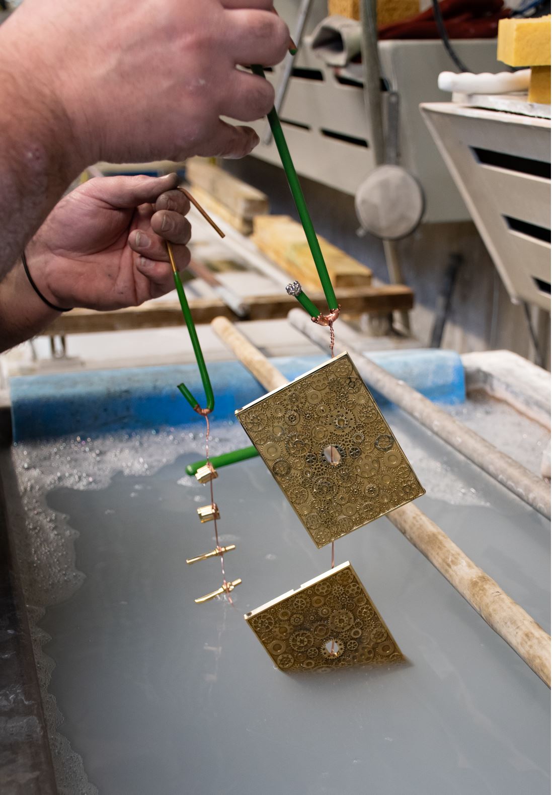 De nombreuses réalisations sur-mesure et créations personnalisées (35 % des produits fabriqués) voient régulièrement le jour dans les ateliers MELJAC, comme le Pupitre créé pour l’hôtel Mandarin Oriental (Paris et Münich) ou encore des plaques gravées spécifiquement pour les projets résidentiels.