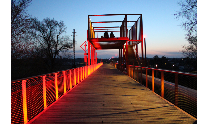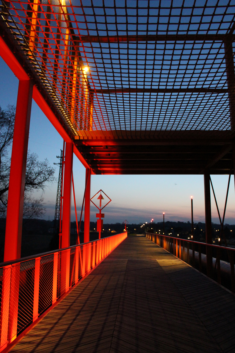 La mise en lumière du pont de fer est dynamique. Elle alterne une série de petites séquences d’éclairage “mouvantes” entrecoupées de séquences fixes, afin de suggérer le passage des trains tout en accompagnant ainsi par le mouvement la déambulation des promeneurs.