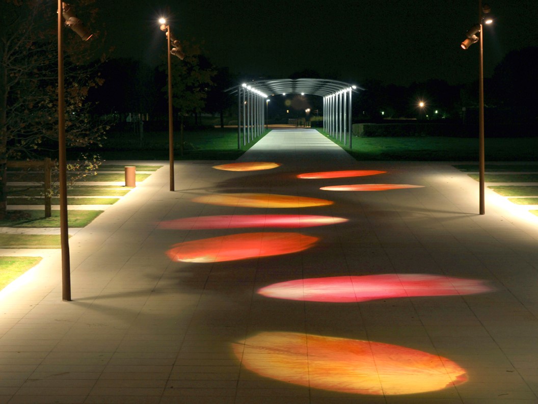 L’objectif de la mise en lumière de ce lieu de passage très fréquenté a consisté à renforcer son attractivité, pour que les passants se réapproprient l’espace, en s’y trouvant bien, tout en ressentant un sentiment de sécurité. L’originalité du projet repose sur un éclairage périphérique des circulations, à l’aide de bandeaux de lumière, en maintenant au centre une obscurité tapissée de pétales de roses, rappelant la roseraie située à proximité.