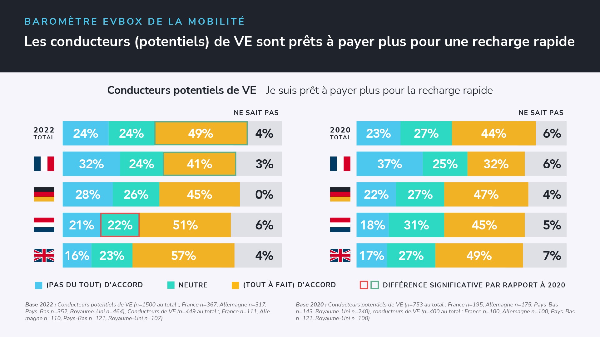 Les installations avec un mix de bornes AC normales 7-22 kW et de bornes DC rapides de 50 à 350 kW sont de plus en plus fréquentes. Selon l’étude de marché 2022 d’EVBox sur l’adoption des VE réalisée en collaboration avec Ipsos, la recharge rapide est un facteur clé de l’adoption des VE car « l’un des principaux obstacles à cette adoption est la perception que la recharge des véhicules électriques prend trop de temps. Les chargeurs rapides sont la solution pour résoudre cette problématique ».