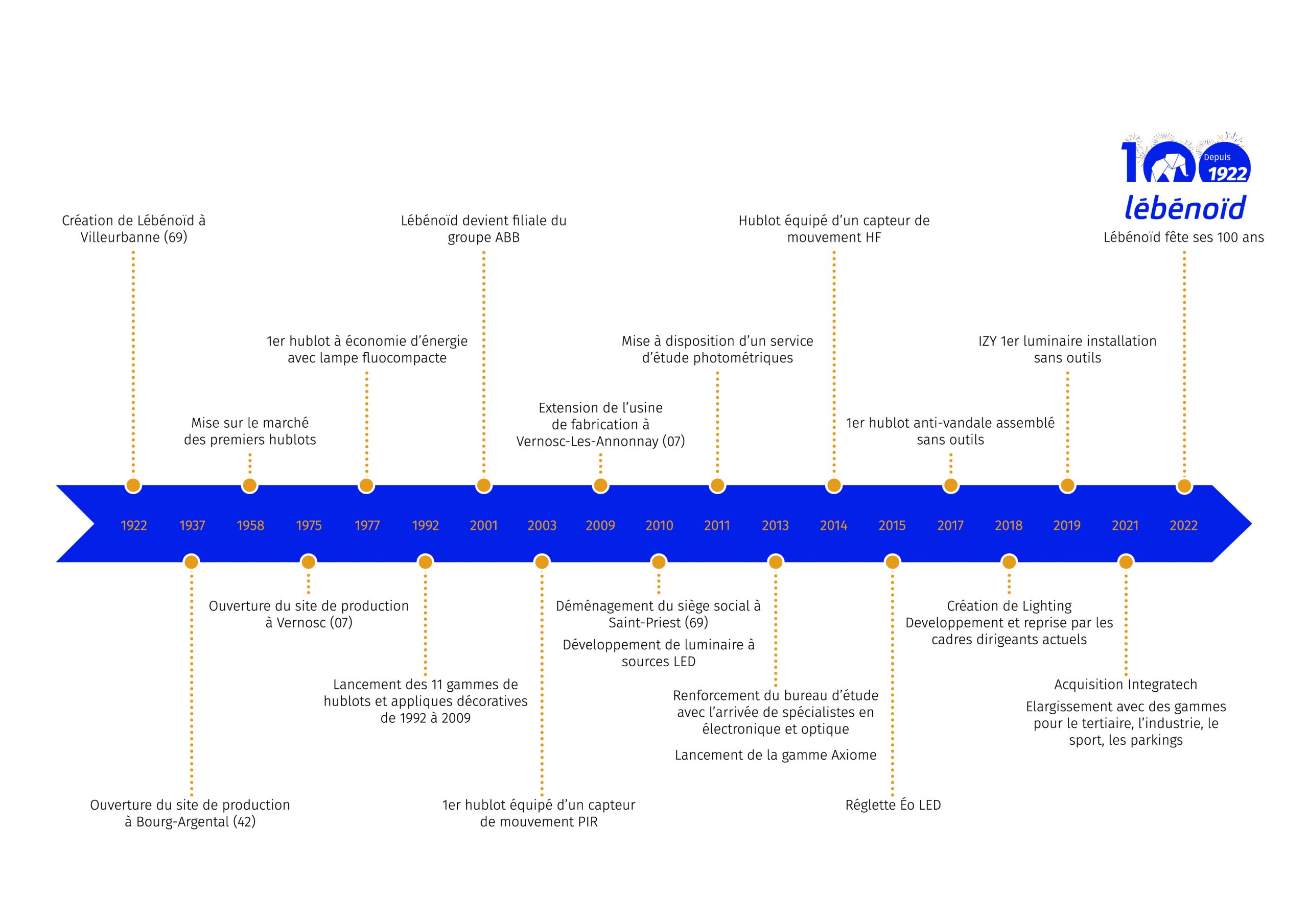 Christophe Bayol – Créée en 1922 à Villeurbanne (69), la société fabriquait des ustensiles de cuisine en matière thermodurcissable. Nous sommes au début du XXe siècle, en pleine phase d’électrification en France, l’entreprise, pour diversifier son activité, avait conçu un isolant électrique qu’elle avait appelé « ébénoïd ». Le nom est composé de deux parties : « ében », comme le bois, qui est un matériau robuste et isolant, et la terminaison « oïd » qui, à l’époque de la création de l’entreprise, avait une conation futuriste (et qui signifie aussi « qui se rapporte à »). Dans les années 1950, L’Ébénoïd (1) se diversifie et produit de nouveaux accessoires électriques plus orientés domestiques, puis des hublots, et étend ensuite ses gammes aux luminaires fonctionnels. L’éléphant présent dans le logo existe depuis le début et symbolise la robustesse du produit L’Ébénoïd sur lequel, à l’origine, l’animal reposait sa patte. Les passages d’un produit à l’autre se sont effectués sans changements radicaux, l’entreprise restant un industriel utilisant des matières thermodurcissables ou polymères injectables. Puis, au cours des vingt dernières années, L’Ébénoïd change de mains plusieurs fois : elle est rachetée par Entrelec, fabricant d’accessoires électriques, qui souhaite opérer une véritable synergie industrielle. Dans la foulée, en 2001, Entrelec est rachetée à son tour par le groupe helvético-suédois ABB France au sein duquel la marque L’Ébénoïd se retrouve seul fabricant de luminaires. En 2017, j’intègre L’Ébénoïd comme directeur commercial. Après une formation technique et une école de commerce, j’ai suivi un parcours dans le monde de l’électricité, de la distribution professionnelle (en 1995, je vendais des produits L’Ébénoïd !), en passant par des fabricants de matériels électriques et enfin, des installateurs. En 2018, ABB décide de revendre l’entreprise : Sylvain Palombo et moi-même montons un projet afin d’acquérir L’Ébénoïd via la holding Lighting Developpement, accompagnés par notre partenaire financier Ciclad. La marque devient alors Lébénoïd et se dote d’un nouveau logo affirmant le dynamisme et la modernité de la marque pour mieux se projeter dans le futur.