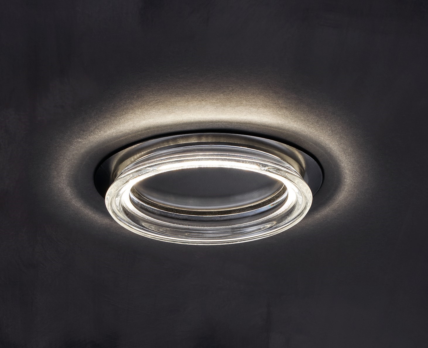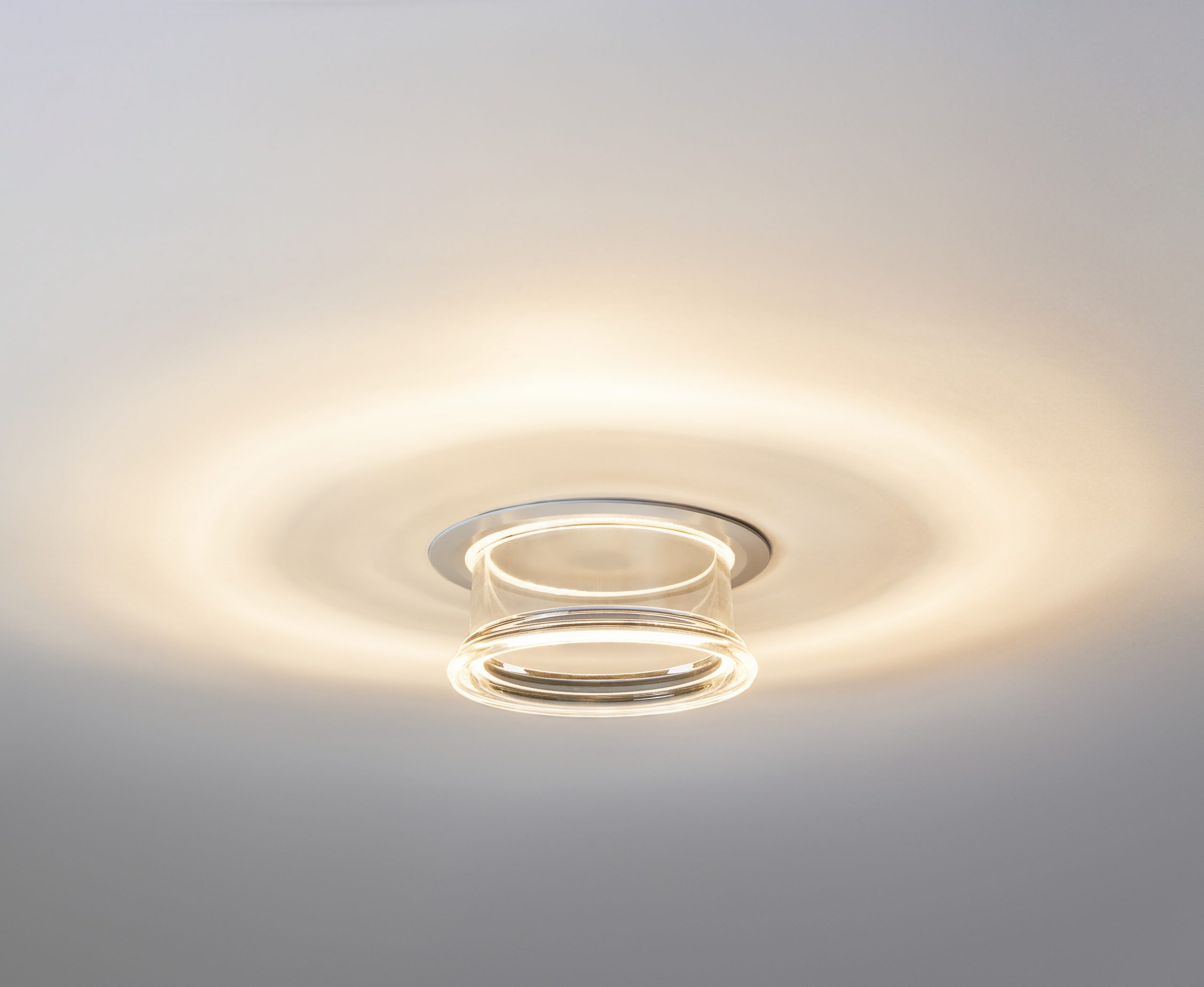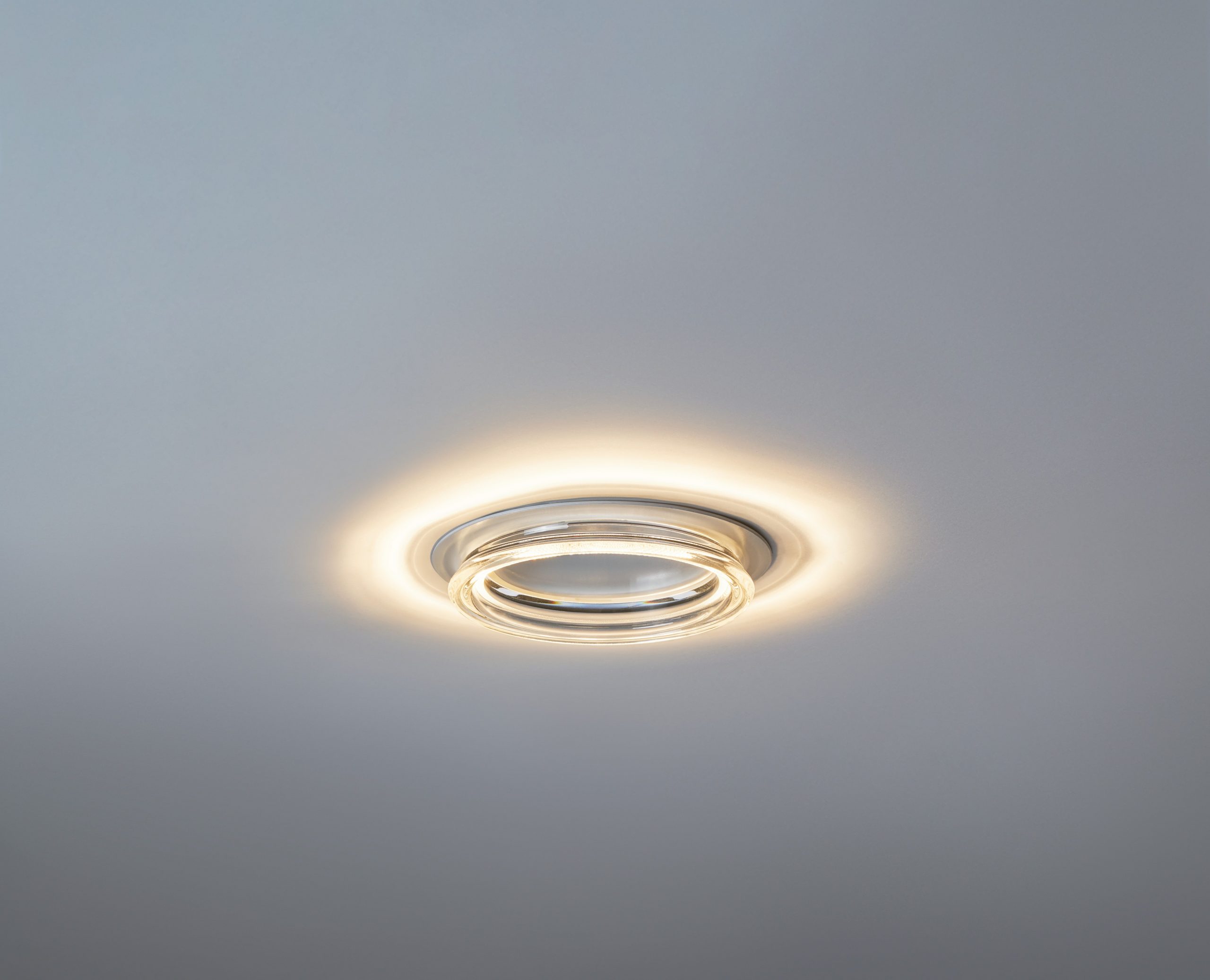 « Le choix d’un visuel fort et impactant s’est donc imposé pour la campagne de communication : c’est parce que le luminaire crée ce halo que nous avons choisi cette représentation en forme d’œil, explique Benjamin Chapuis, chef de produits, Sylvania. L’image fait en effet écho au rendu du produit qui a une double émission, directe et indirecte, et dont le flux dirigé vers le haut dessine ce cercle lumineux au plafond. » Le diamètre de ce cercle de lumière varie en fonction de la position de l’optique, sur laquelle il est possible d’agir. Au-delà de l’éclairage fonctionnel et architectural auquel il est dédié, Concord Equinox a été conçu pour créer de l’émotion à la fois par la lumière qu’il diffuse et à travers le luminaire lui-même. « Tout ce qui fait la singularité de ce downlight, c’est son optique, précise Benjamin Chapuis, développée par QuarkStar, un fabricant américain qui l’avait destinée à l’origine à un format linéaire. Les techniciens du département R&D Sylvania ont eu l’idée de l’adapter à un luminaire circulaire. »