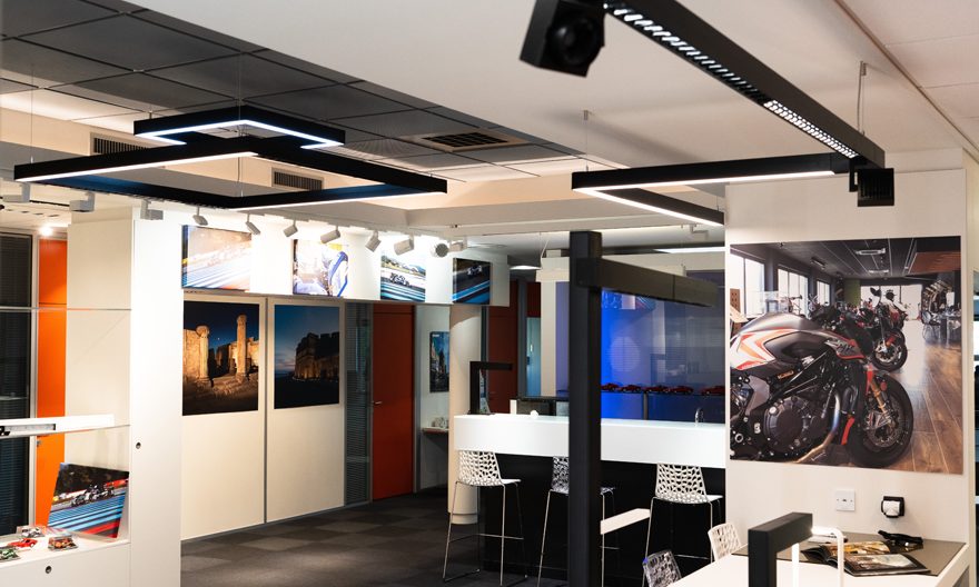 La partie intérieure des showrooms est davantage consacrée à l’éclairage architectural et présente entre autres, la nouvelle gamme Liset 2.0 by Fosnova. Liset 2.0 est un luminaire linéaire et modulaire qui simplifie la composition de l’éclairage et peut adopter plusieurs configurations, quelle qu’en soit l’application : commerce de détail, contextes architecturaux et culturels, espaces d’accueil et/ou structures d’hébergement, décoration d’intérieur.
