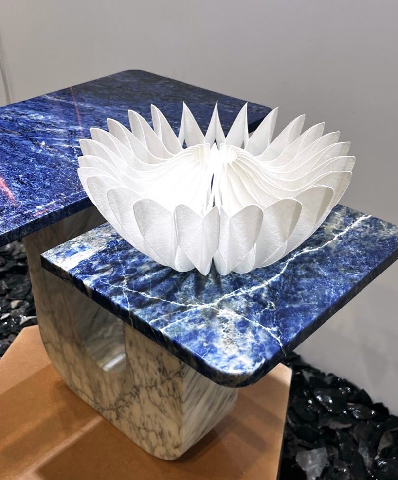 La lampe Circea et son clone 3D ont été conçus par le designer Luc de Banville. Aux confins des mondes physique et digital, le design phygital associe un objet à son NFT, cette pièce numérique authentifiée par un certificat. Le NFT de Circea (cette lampe aux huit métamorphoses), peut être inséré dans un métavers ou un jeu vidéo. Le certificat NFT de Circea est une carte en papier avec trois QR codes imprimés. Après l’achat, il suffit de flasher ces codes pour s’authentifier sur le site du partenaire de Maison Papier, MINTING.fr, et de télécharger le fichier de son NFT.