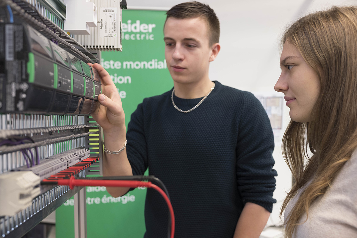 « Le taux d’employabilité est de 100 %. Nous n’avons pas assez de jeunes par rapport à la demande des entreprises. 70 % des apprenants poursuivent en licence professionnelle, très souvent avec la même entreprise d’apprentissage. Les 30 % diplômés et sur le marché du travail trouvent directement un emploi, là aussi, en très grande majorité dans l’entreprise qui les ont accueillis pendant leur formation. Cette année, nous avons admis 24 étudiants pour le cursus temps plein/apprentissage et 15 étudiants pour le cursus 2 années en apprentissage. Nous pourrions accepter plus d’étudiants, mais nous avons cette vocation à rester qualitatif tant au niveau du contenu que du suivi et de l’accompagnement », précise Damien Bizart – École Schneider Electric.