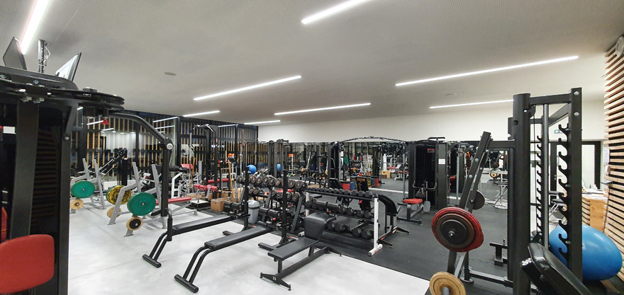 « Pour chaque pratique, ajoute Raynald Vilaine, nous nous sommes efforcés de tenir compte à la fois de l’architecture et des exigences des fédérations sportives pour obtenir un éclairage qui combine contraintes techniques et aspect esthétique des lieux. Nous avons également essayé de conserver une certaine harmonie dans le choix des luminaires : ainsi, ce sont également des luminaires Venice qui éclairent la salle de musculation. »