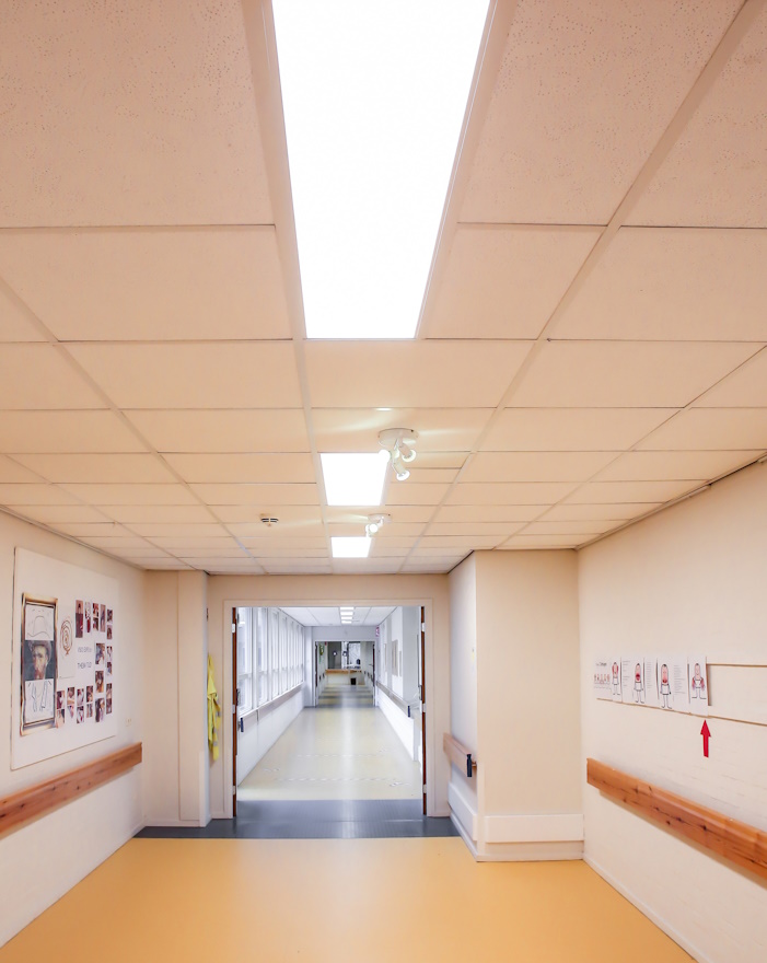 Cette école accueille des enfants polyhandicapés qui ont des besoins spécifiques en matière d’éclairage. Le contrôle de l’éblouissement ainsi que l’uniformité de l’éclairage ont joué un rôle très important dans ce projet.