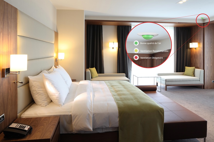 Une analyse précise et en temps réel de la qualité de l’air des différents espaces des hôtels, à l’aide de capteurs, permet d’avoir une idée précise des actions à réaliser. Le capteur de QAI mesure précisément chacun des polluants présents dans l’air et aide le gestionnaire à apporter une réponse en conséquence : « La ventilation constante, sans prendre en compte les paramètres de la qualité de l’air est une erreur, selon nous. Il faut ventiler lorsque c’est nécessaire, faute de quoi la ventilation est inefficace, voire contre-productive : envoyer l’air intérieur dehors oblige la CVC à compenser les écarts de température de l’air extérieur avec l’air entrant. Pour nous, ventiler en continu est aussi inefficace que de chauffer sans définir une température de consigne », poursuit le spécialiste Airzone.