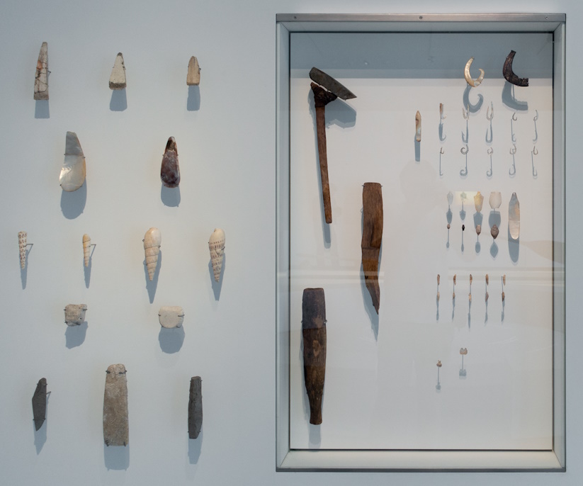 Le nouveau bâtiment s’ouvre sur les jardins au nord et au sud, et est cadré à l’est et à l’ouest par la montagne sacrée de Tahiti, le Mou’a Puta, et le lagon. La scénographie du musée repose sur l’idée des cinq archipels polynésiens, avec une approche chronothématique pertinente et empreinte de sacré, sur fond d’animisme. Dès l’entrée du musée, le visiteur est entraîné au cœur de la géographie polynésienne qui raconte comment les îles sont apparues, puis il découvre cinq îlots qui présentent, à travers des objets archéologiques, l’histoire et la culture des cinq archipels (qui s’étendent sur plus de 1 800 km). « En nous appuyant sur les matières et les couleurs des objets, nous avons choisi des ambiances plutôt claires, explique Alexis Coussement, qui permettent de créer des jeux de miroirs à la fois pour bien percevoir les détails des objets et pour bénéficier d’une vision de l’ensemble de la muséographie de la grande salle. »