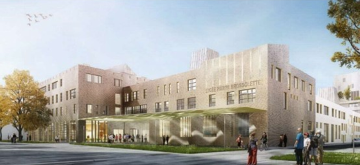 Le lycée Pierre Brossolette de Villeurbanne (69) a été reconstruit récemment ; il peut accueillir 1200 élèves sur une surface de 14 500 m2 et dispose des dernières innovations technologiques.