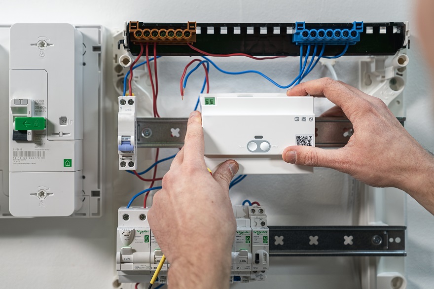 Installation d’une passerelle Smartkiz d’Overkiz dans un tableau électrique. © Overkiz