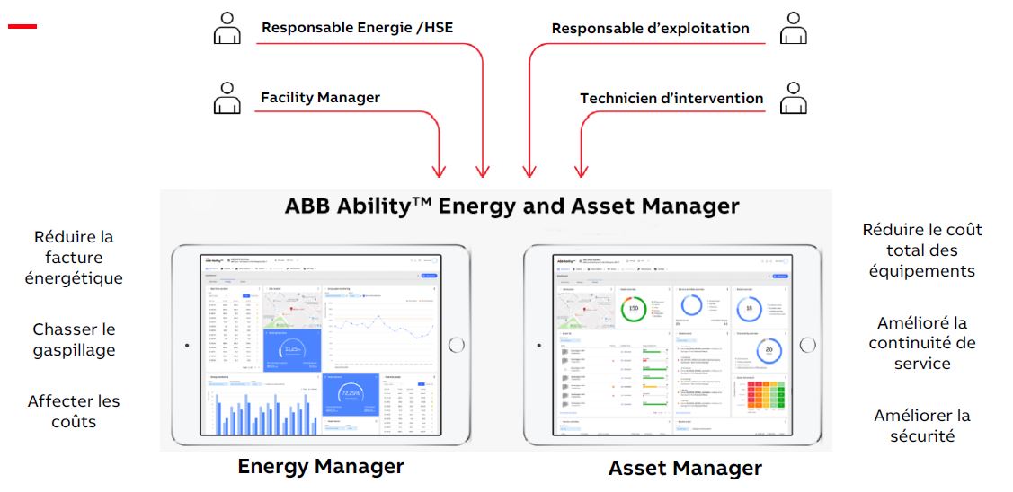Cet outil global communique avec n’importe quel appareil électrique d’ABB ou d’une marque tierce. Il va permettre de consolider d’une manière ergonomique les différentes consommations énergétiques d’un bâtiment ou d’une usine, de suivre l’état de santé et la performance d’une installation électrique, et de détecter des dérives de consommation. Il contribue par exemple sur un site important de rééquilibrer des transformateurs, de rééquilibrer des phases en fonction de l’évolution des besoins. Cela va jouer un rôle clé pour renforcer l’efficacité et la productivité, car les rendements seront meilleurs.