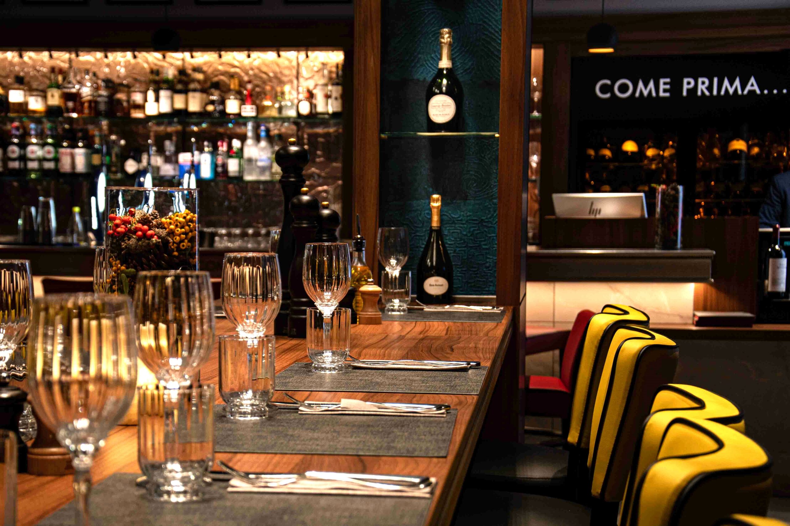 Le maître d’ouvrage, Vincenzo Bonaffini, n’en est pas à son premier restaurant. En effet, l’homme d’affaires a déjà racheté une dizaine d’établissements pour les rénover. Avec Come Prima – « Comme au début », en italien, est le titre d’une chanson écrite par Mario Panzeri sur une musique de Vincenzo Di Paola et Sandro Taccani, interprétée, entre autres, par Dalida, dont un portrait orne une des parois de la salle –, c’est comme un retour aux sources. Situé à Annecy, avenue d’Aix-les-Bains, dans le quartier de Seynod, le restaurant dont la gérance a été confiée à Sébastien Bourbon propose des spécialités italiennes et siciliennes, dans un décor chic et chaleureux. Vincenzo Bonaffini souhaitait des mises en lumière différenciées pour accompagner les espaces créés par l’architecte Jean-Louis Meyer : un bar, une salle sous une verrière, une pergola, dans un décor rouge flamboyant et bois. « C’est l’entreprise Pettini Électricité qui a pris contact avec moi, commente Thierry Jacquot (L&S-Concept). Nous avions travaillé ensemble plusieurs fois et elle a intégré la prestation projet d’éclairage au budget global d’électricité. Ensuite, elle m’a mis en contact avec le maître d’ouvrage et le maître d’œuvre du restaurant qui m’ont expliqué chacun leurs attentes en termes de mise en lumière. »
