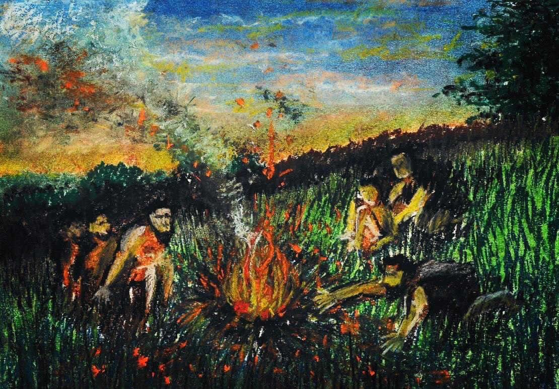 Scène 1 : Au coin du feu – Néolithique – Sources : Henri Alekan « Des lumières et des ombres », Bernard Maitte « Une histoire de la lumière », Juliette Maricourt « Raviver la ville ».