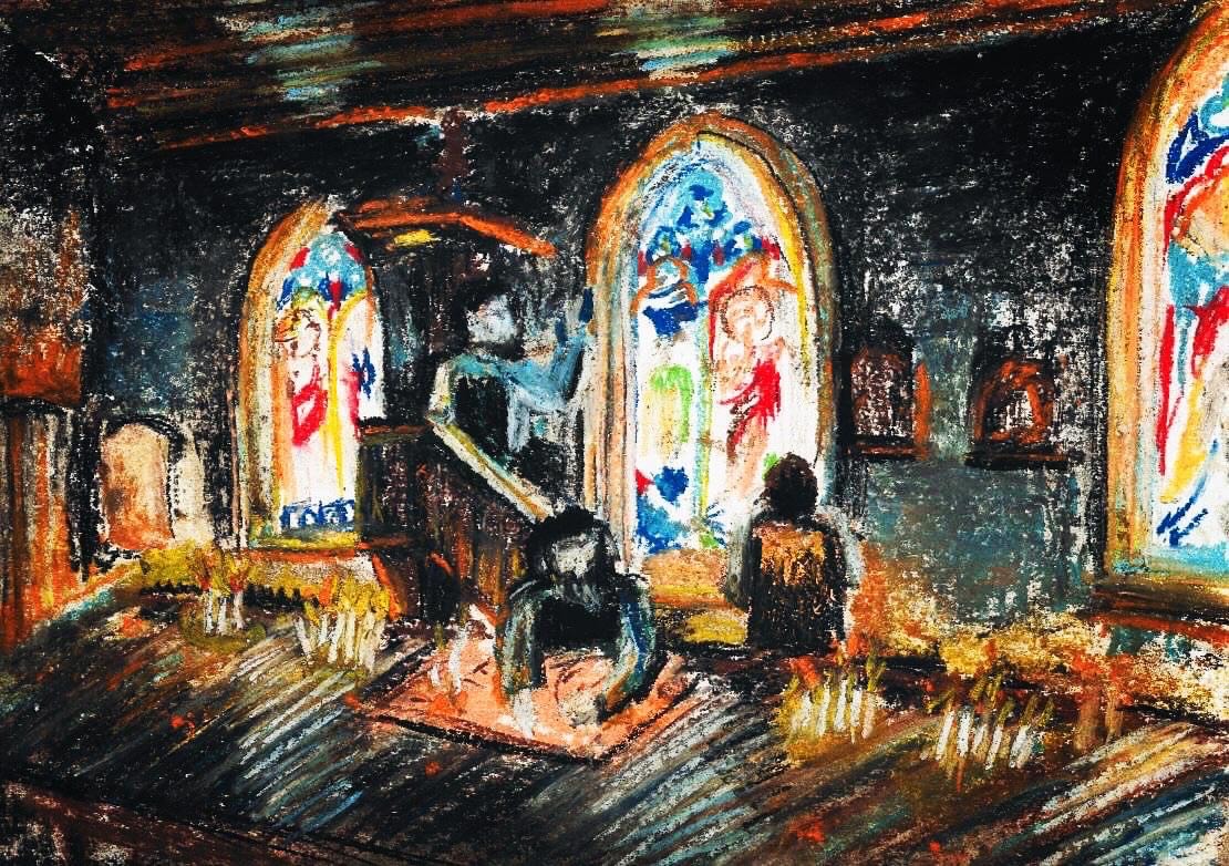 À la lueur des bougies, parmi les alcôves de l’église, le public surprend un maître verrier et son apprenti en pleins travaux sur la confection de vitraux. On évoque alors la portée symbolique de la lumière, le rôle éducatif du vitrail dans les lieux de culte et sa fabrication qui perdure de nos jours tout en parlant des particularités de l’église de Saint-Christophe-sur-Condé.