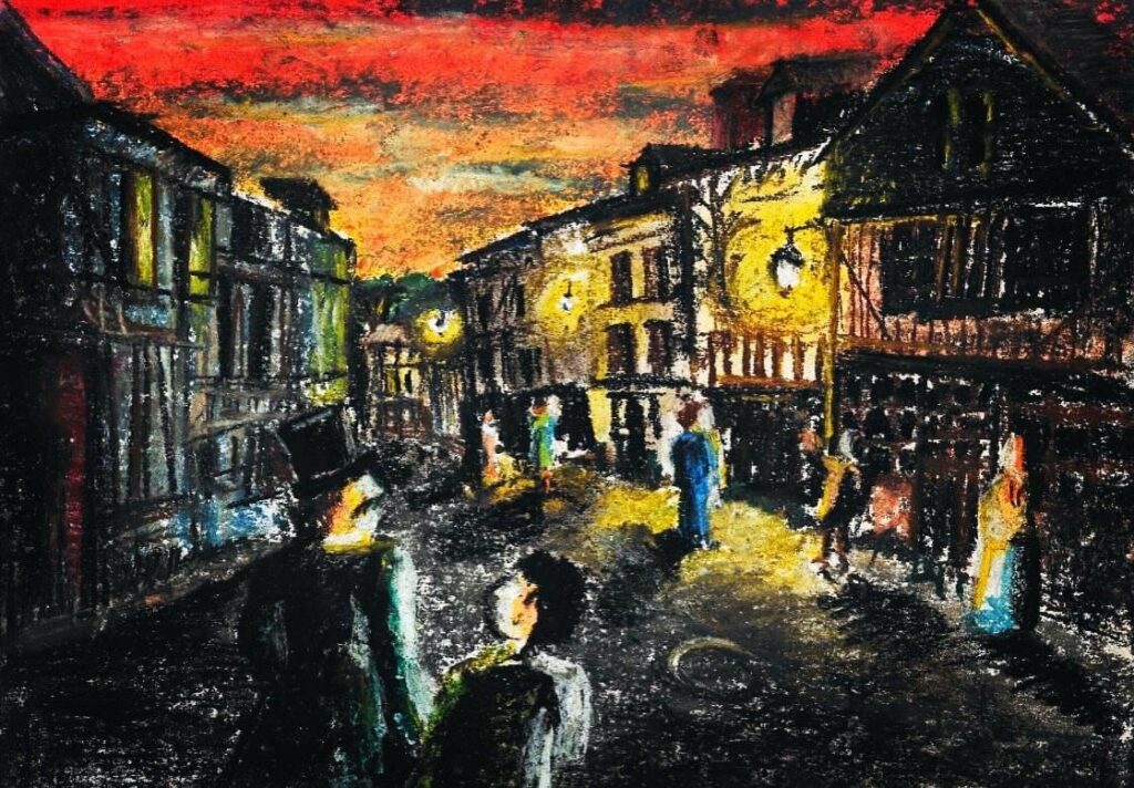 C’est l’effervescence parmi les habitantes et habitants du village… Nous y sommes : à la lueur des réverbères ! L’un des premiers éclairages publics dans une rue. C’est une petite révolution qui changera à jamais la relation du noctambule dans la nuit des villes.