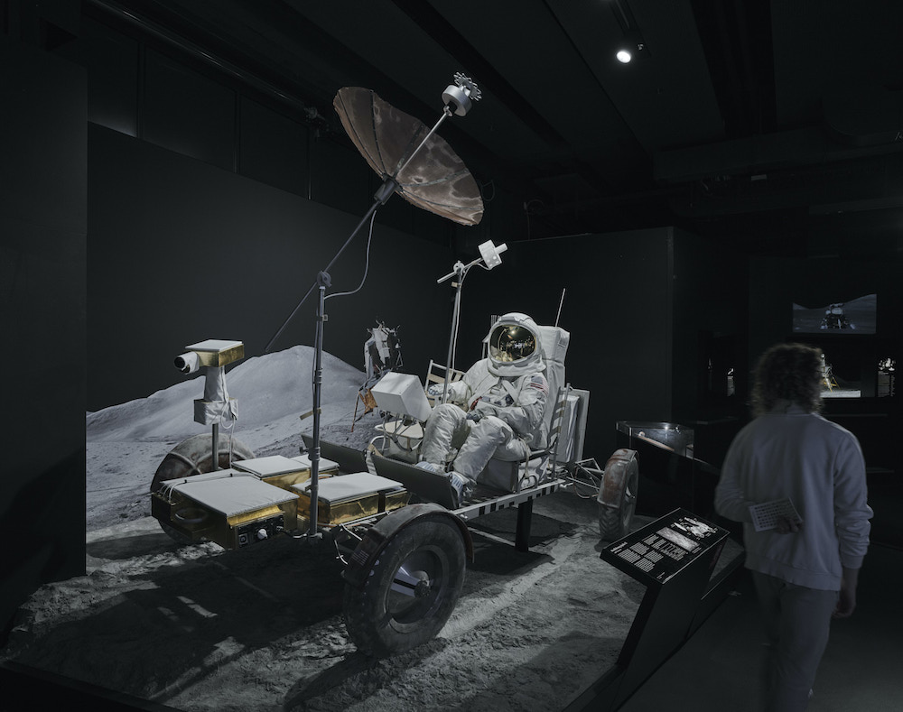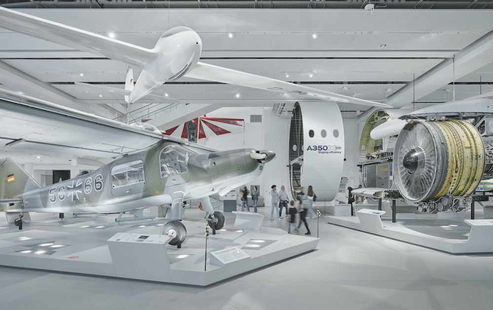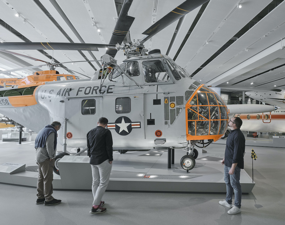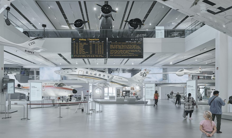 « Optec de ERCO est une gamme de produits qui convainc par sa grande flexibilité et les nombreuses possibilités qu’elle offre, et ce à un prix raisonnable », selon le concepteur d’éclairage. Après la pose de tous les appareils d’éclairage, il s’est lui-même rendu sur place pour positionner les différents projecteurs et les orienter de manière optimale. « Dans les zones où la lumière du jour pénètre en abondance, nous avons décidé, en accord avec les concepteurs d’exposition, de travailler avec des éclairements élevés – notamment dans le secteur de l’aviation moderne, où d’immenses baies vitrées rappellent les portes d’un hangar ». Rien ne s’opposait, du point de vue de la protection des œuvres, à ce que les objets exposés soient mis en lumière avec des éclairements élevés.