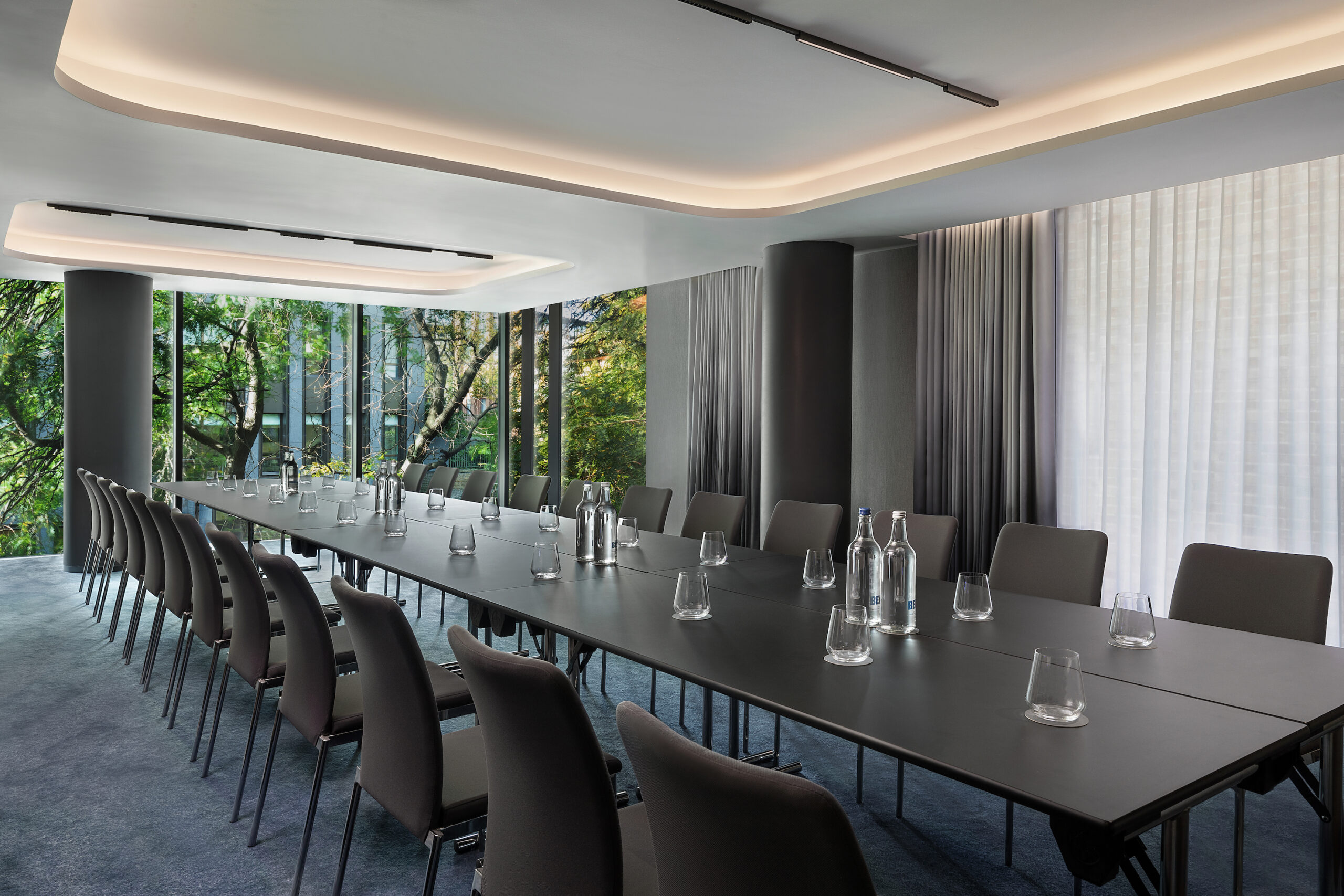 Pour la salle de conférences Roméo et Juliette, en revanche, qui exploite la lumière naturelle entrant par les fenêtres et qui est parfaite pour les dîners privés, les réunions et les présentations, ainsi que pour la salle de conférences exécutive qui peut accueillir jusqu’à 18 personnes, des luminaires Ink System ont été sélectionnés pour leur facilité d’installation, des bandes led Ribbon ont été positionnées dans le renfoncement du plafond et des downlights Vos ont été installés pour garantir un éclairage ponctuel et homogène.