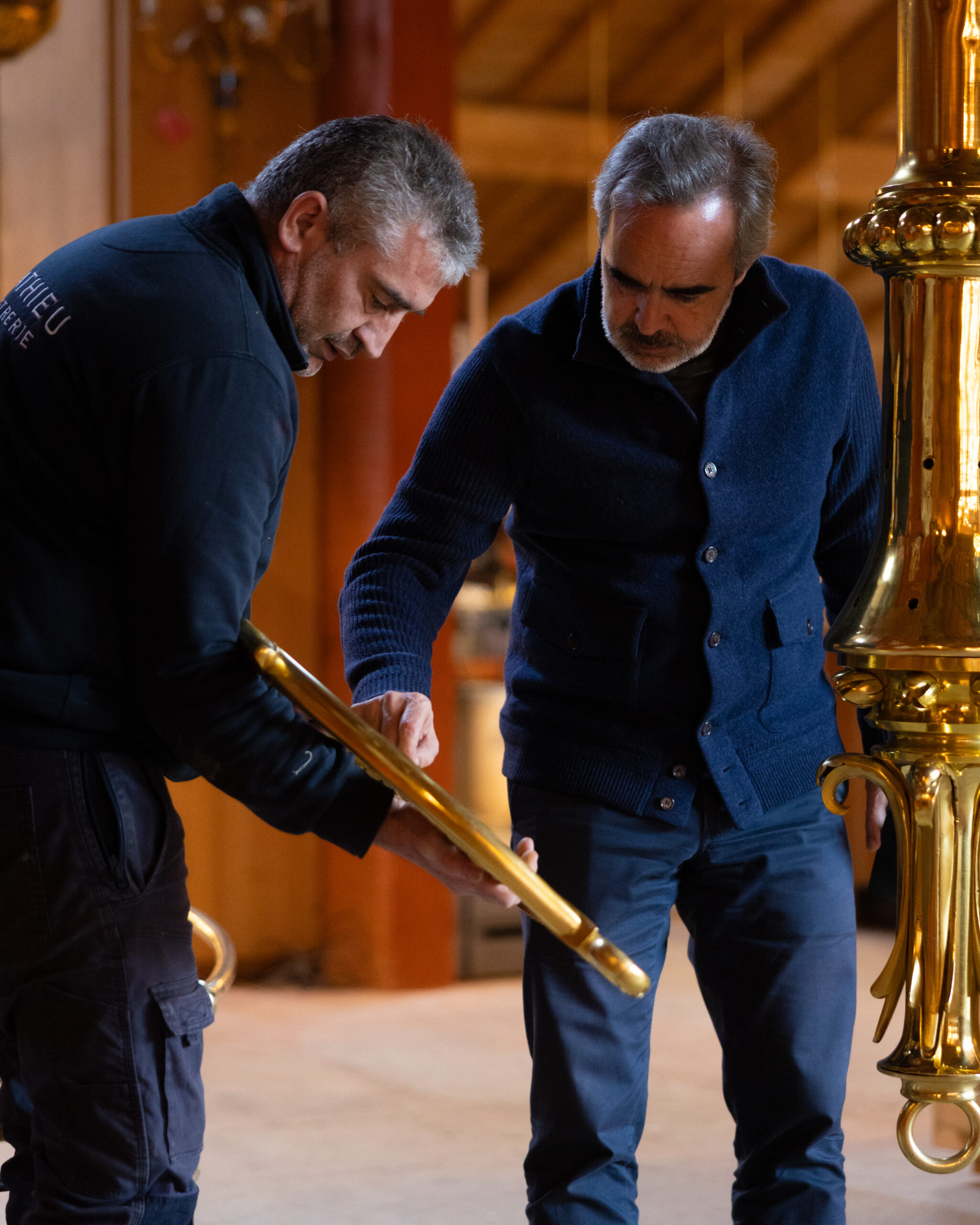 gestes, le quartz, la lumière, l’or, le bronze, l’argent… « Quand on a cette passion pour l’histoire des lustres, on doit absolument écrire l’histoire d’aujourd’hui, sinon il n’y aura pas de restaurateurs demain », confie Régis Mathieu.