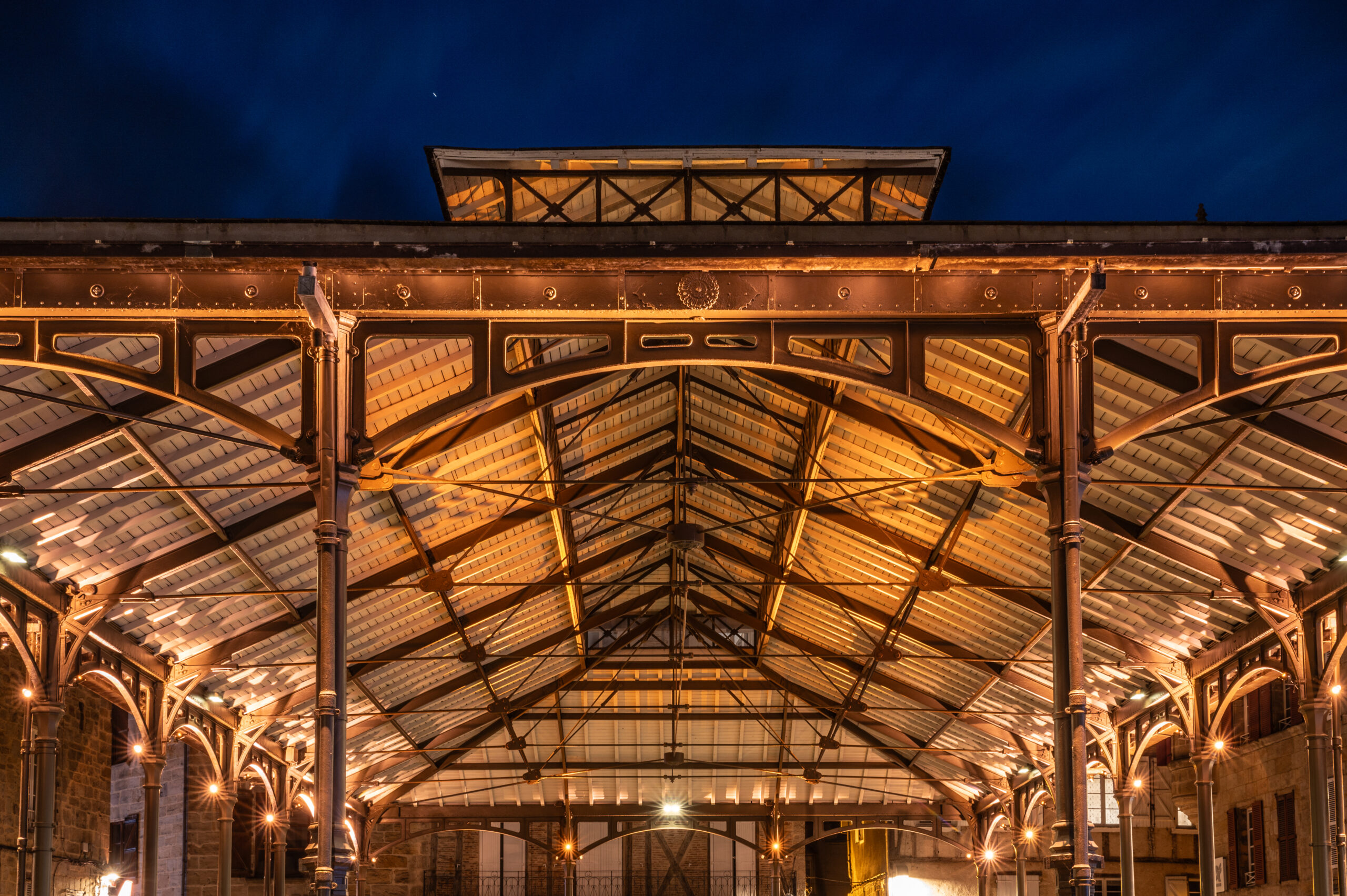Le concept lumière est porté par la volonté d’offrir un projet souple et parfaitement intégré à la halle. « Aucun encastré de sol n’a été utilisé pour la mise en lumière de la halle, précise Lionel Bessières, seulement des éclairages latéraux et en plongée issus de projecteurs de petites dimensions que nous avons fixés discrètement sur la structure de la halle. »