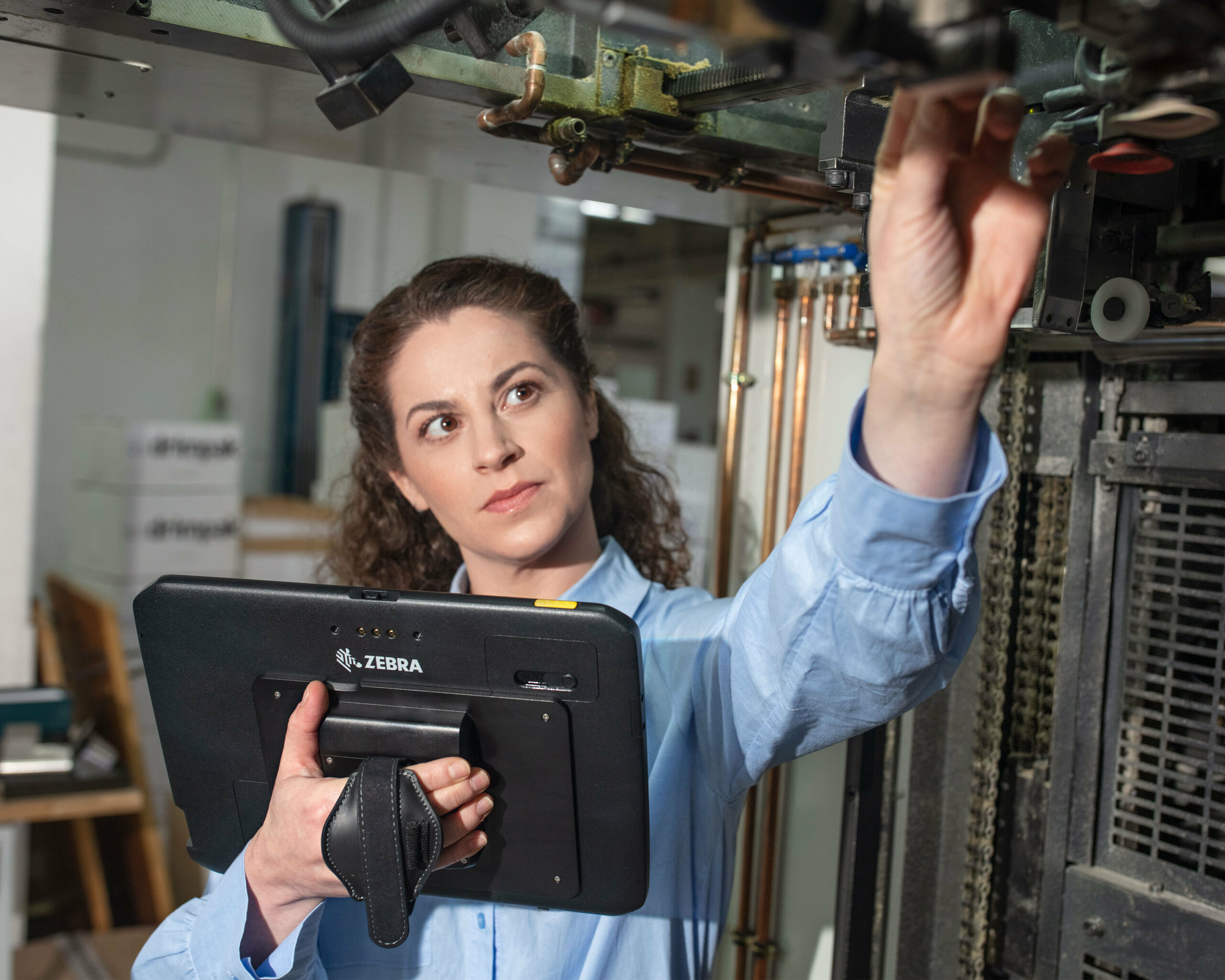 Légende : La tablette Zebra ET85 intégrant un scanner est particulièrement pratique pour la gestion des codes-barres. © Zebra
