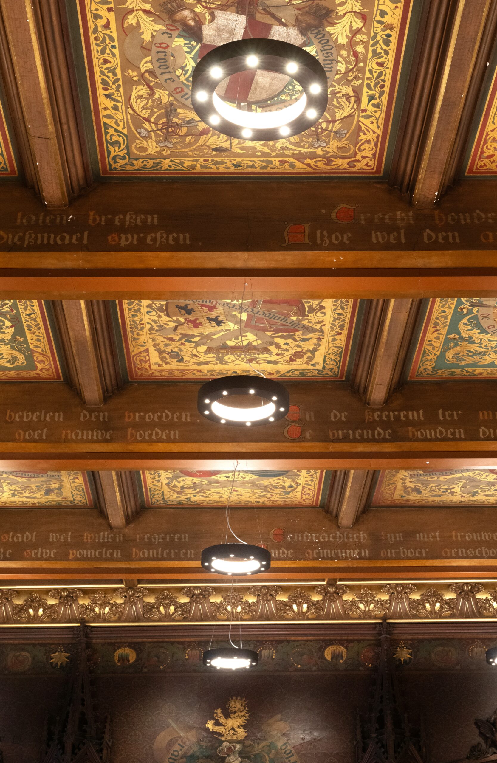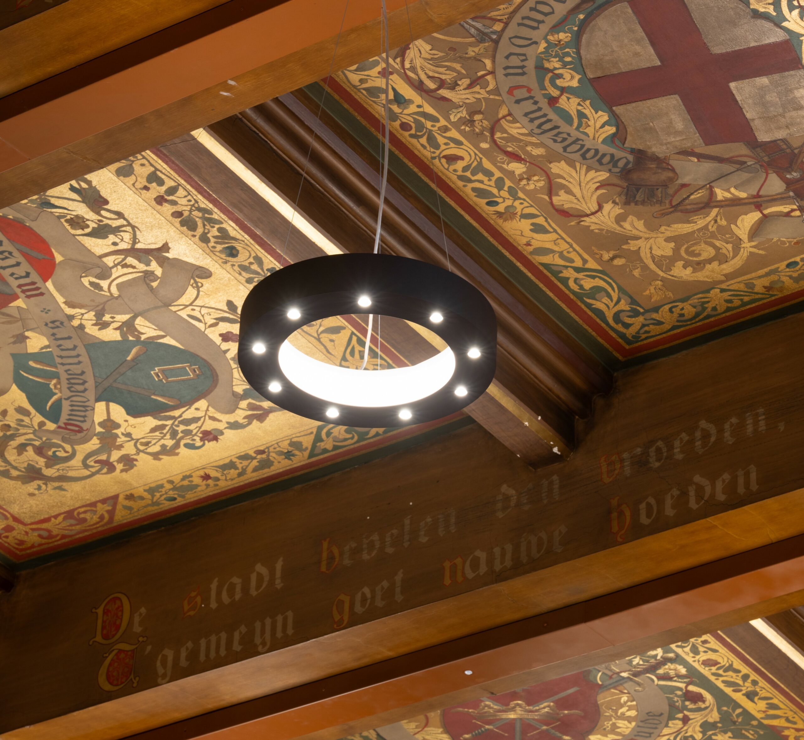 Le projet de rénovation de l’éclairage des salles de prestige de l’hôtel de ville s’inscrit dans la volonté de révéler la beauté de ce haut lieu du patrimoine, et d’améliorer le confort et l’efficacité énergétique de l’éclairage en réponse au plan de réduction de l’empreinte carbone de la ville.