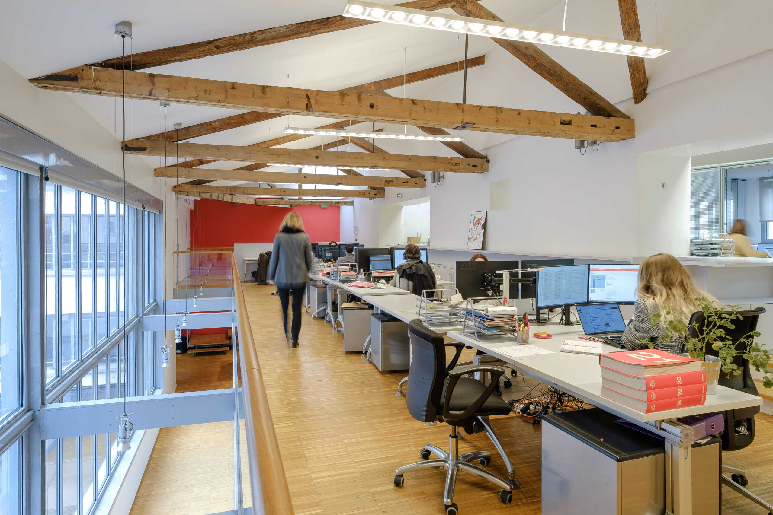 Oui, nous voulions bénéficier d’une grande surface dédiée à la fois à notre base de travail et à l’accueil de nos clients et partenaires : en plus de nos bureaux, nous disposons d’un showroom, d’une salle de conférence, d’espaces d’expérimentation, le défi était d’y parvenir au cœur même de Paris. Le hasard de la vie a fait que, au même moment, en 2004, dans le même immeuble, Antoine de Galbert ouvrait un espace d’exposition pour sa fondation, La Maison rouge, avec la vocation de promouvoir les différentes formes de la création contemporaine au travers d’expositions temporaires. La synergie s’est installée avec évidence : le rouge, c’est la couleur de la marque iGuzzini !