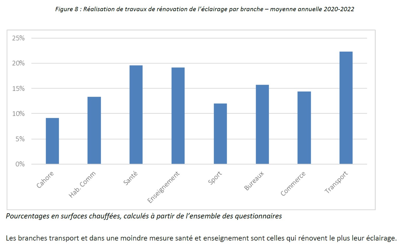 - Seulement 15 % du parc tertiaire rénovent annuellement leur éclairage.